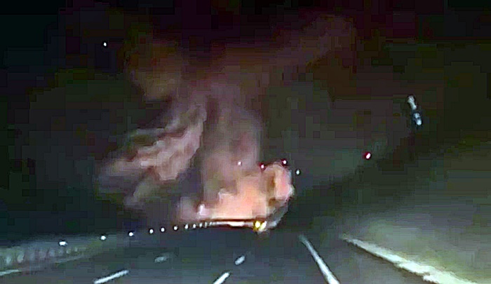 Gece saatlerinde otoyolda seyir halindeki bir aracın kamerasına yansıyan görüntülerde, uçağın gökyüzünde yere çakıldığı anlar saniye saniye kaydedildi. Görüntülerde, otoyolda ilerleyen araçtaki vatandaşların gökyüzündeki patlamayı fark ederek büyük şaşkınlık yaşadığı görülüyor. Patlama anına şahitlik eden vatandaşlardan birinin, “Şimşek mi çaktı? Lan bir şey düştü buraya.” ifadelerini kullandığı duyuluyor. Uçağın düşüşüyle birlikte çevrenin aydınlandığı ve büyük bir alev topunun oluştuğu görüntülere yansıyor.