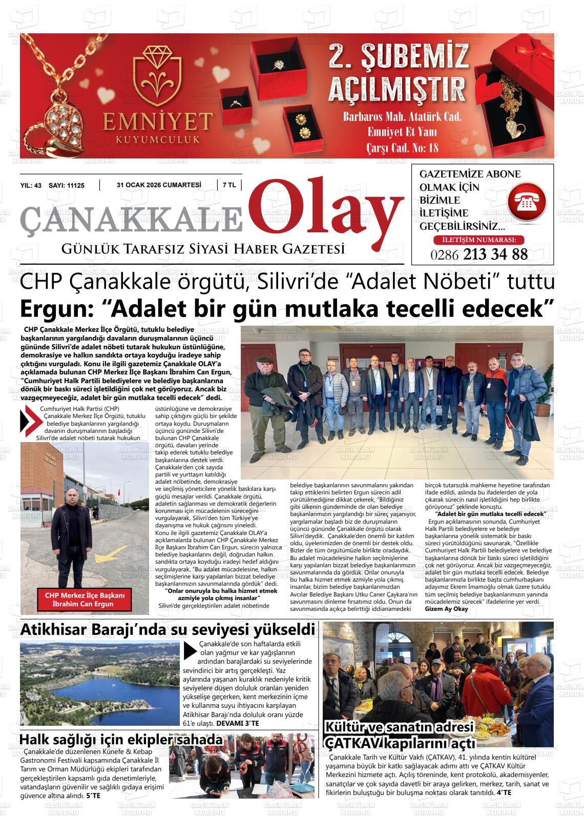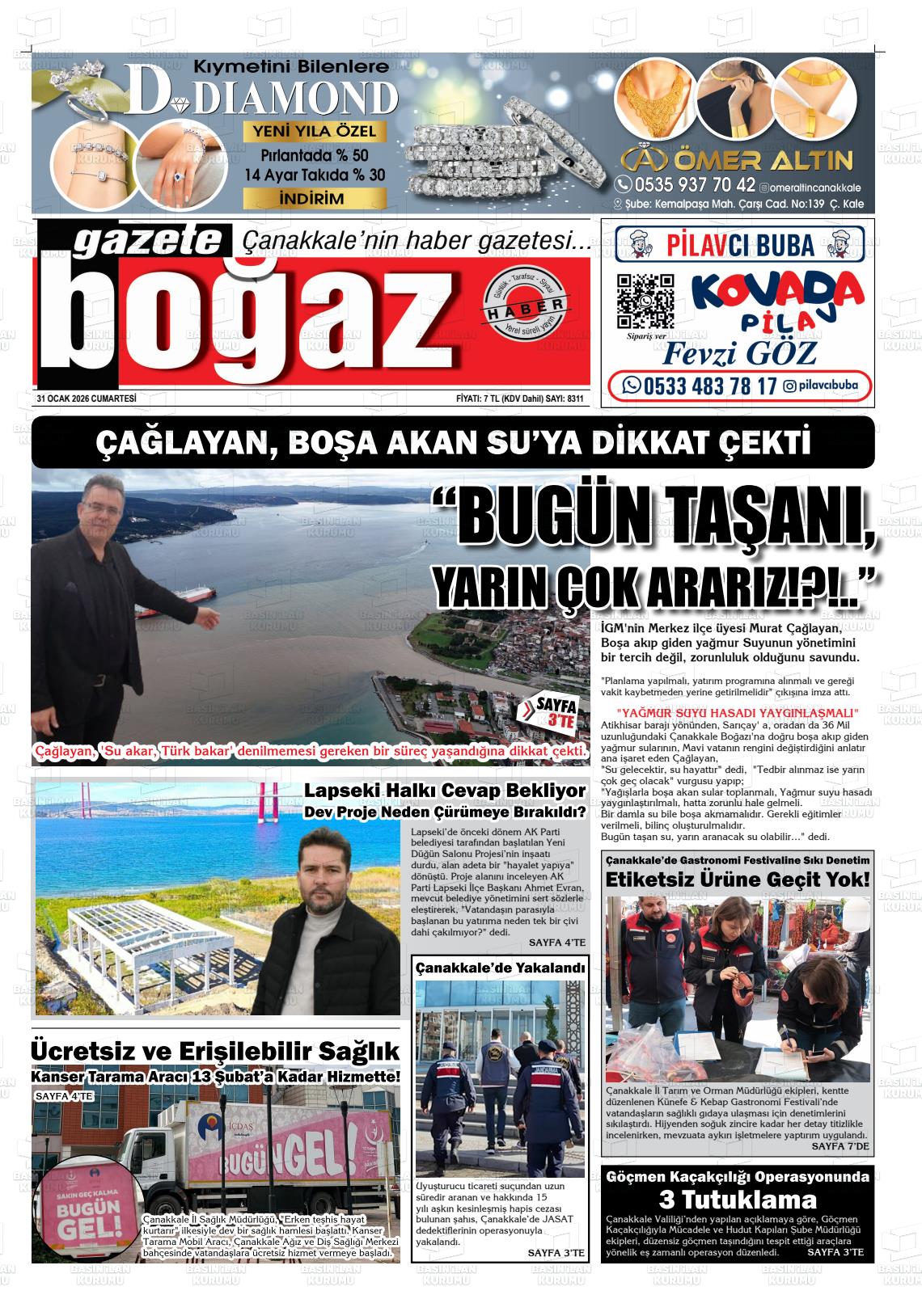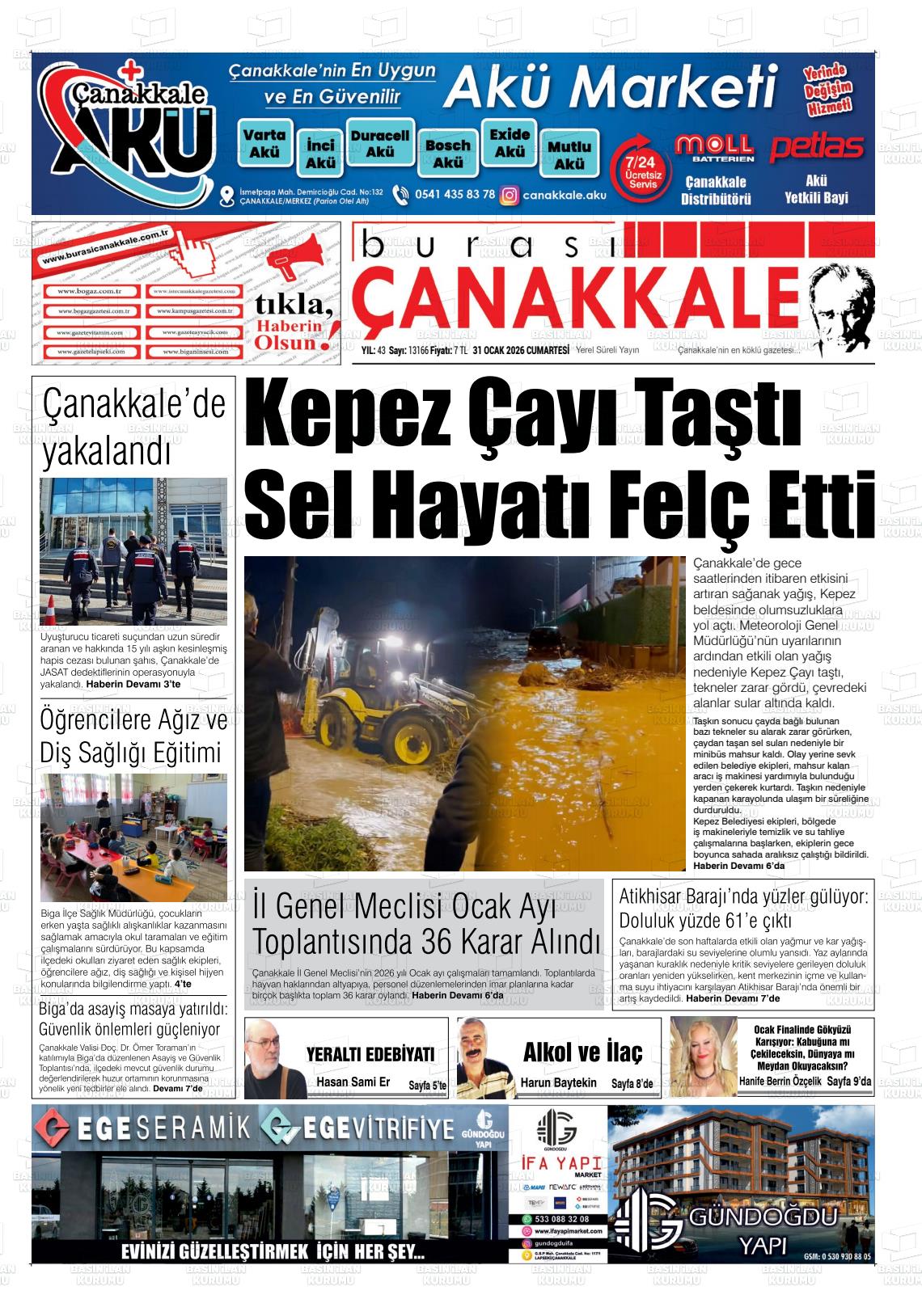 Çanakkale Yerel Gazeteleri 31 Ocak 2026, Cumartesi Günü Manşeti