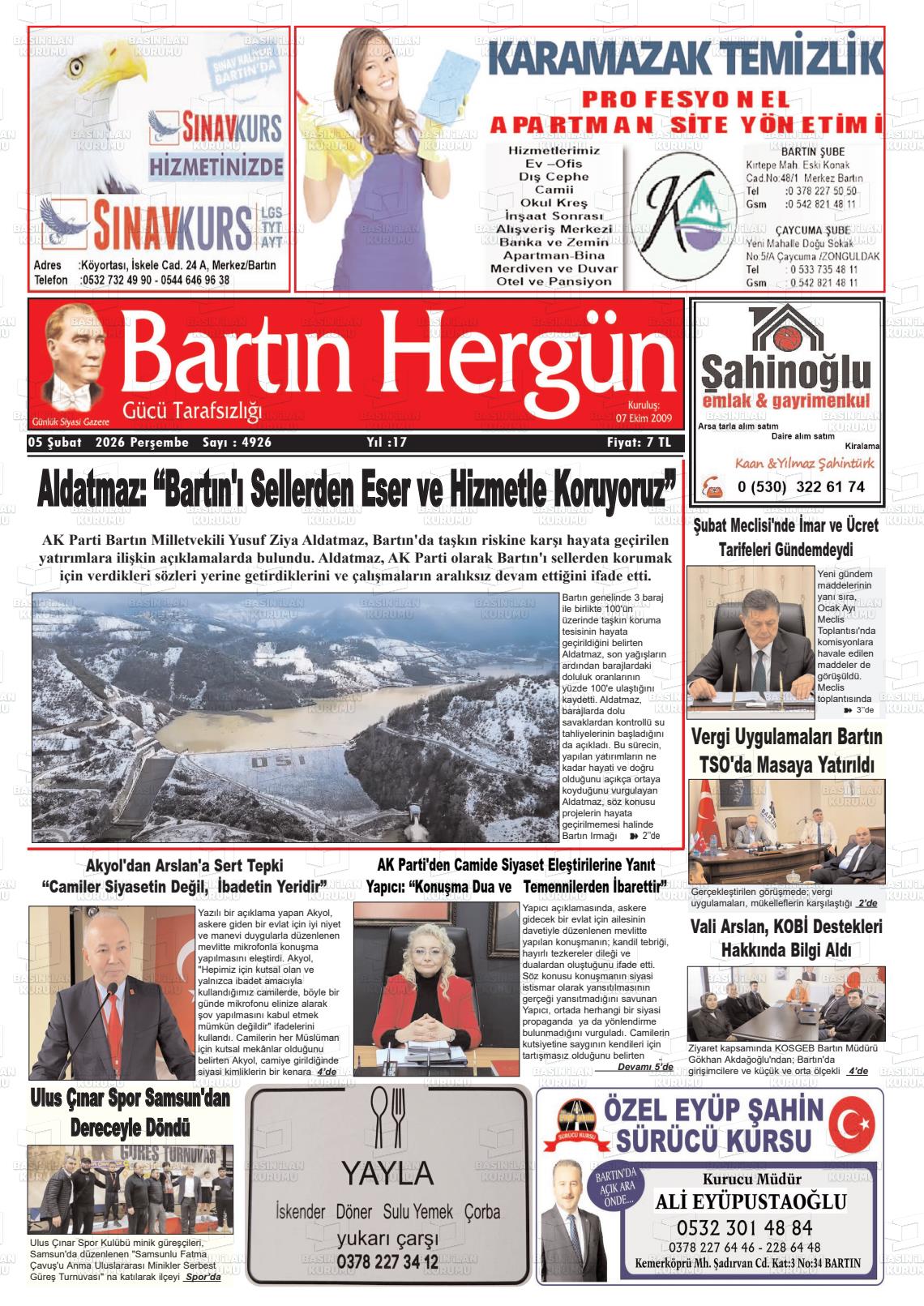 Bartın Yerel Gazeteleri 05 Şubat 2026, Perşembe Günü Manşeti