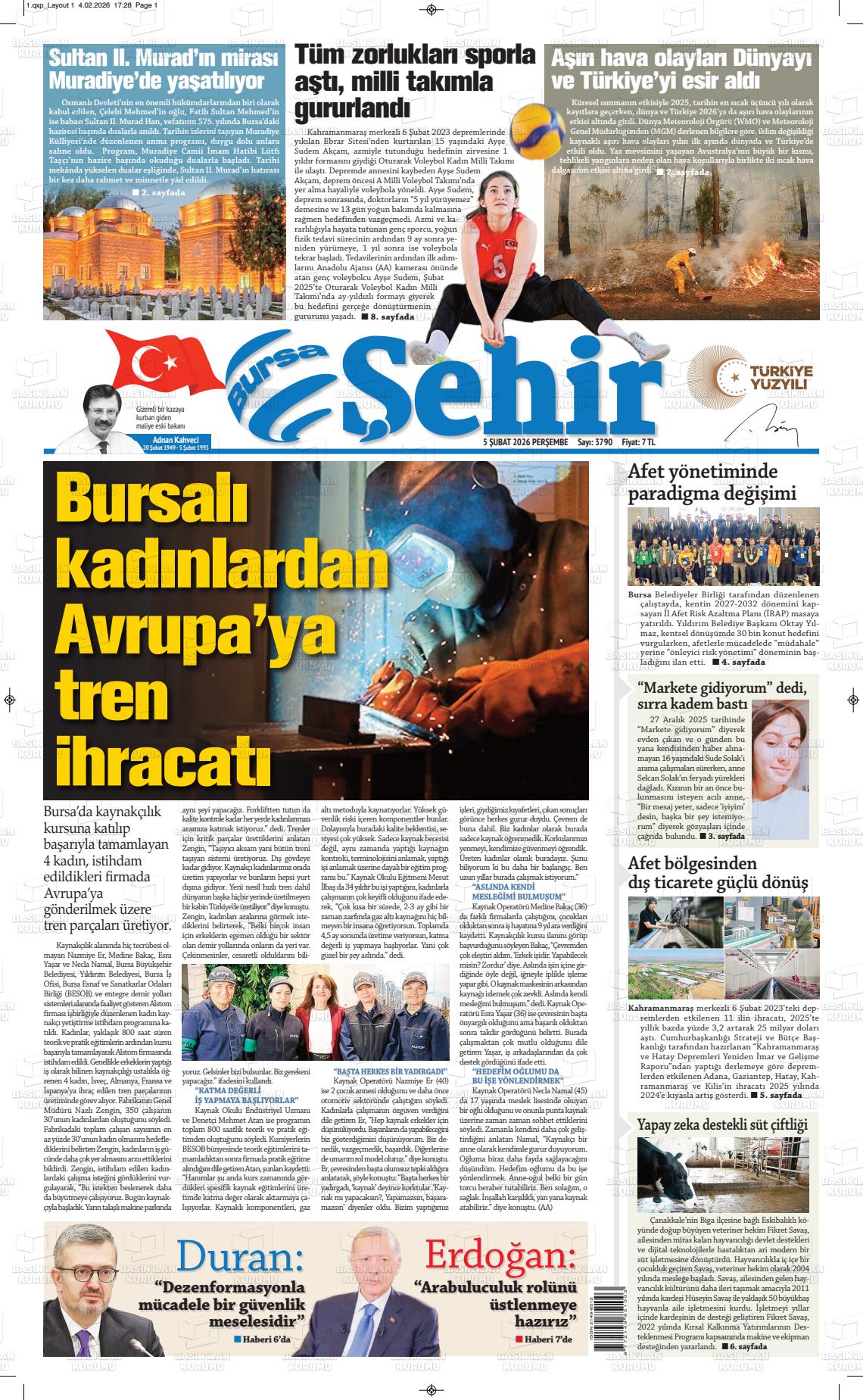 Bursa Yerel Gazeteleri 05 Nisan 2026, Pazar Günü Manşeti
