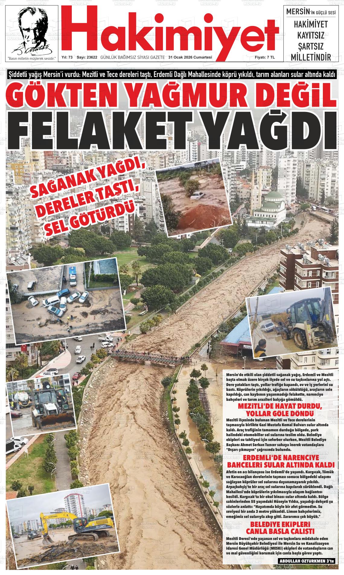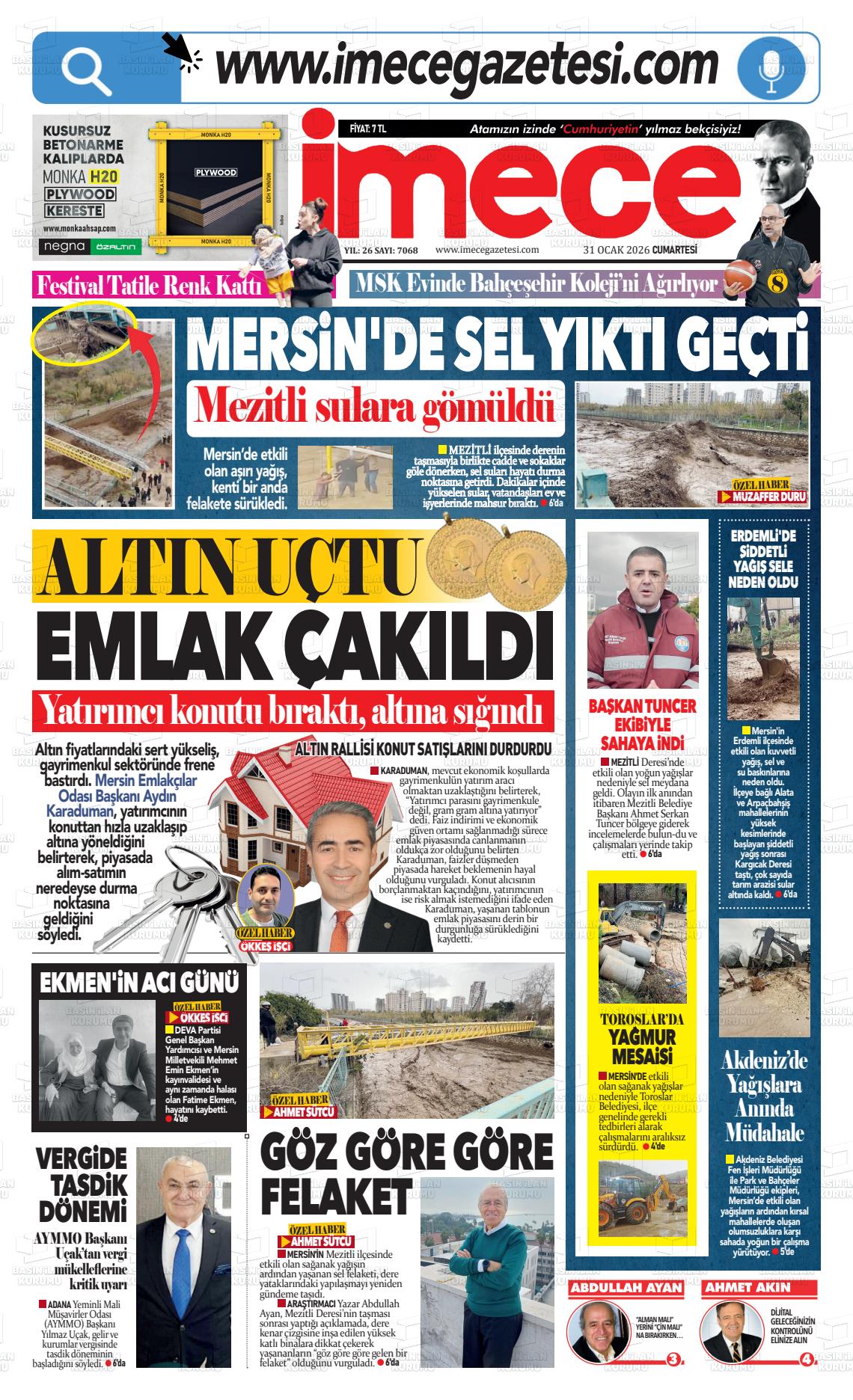 Mersİn Yerel Gazeteleri 31 Ocak 2026, Cumartesi Günü Manşeti