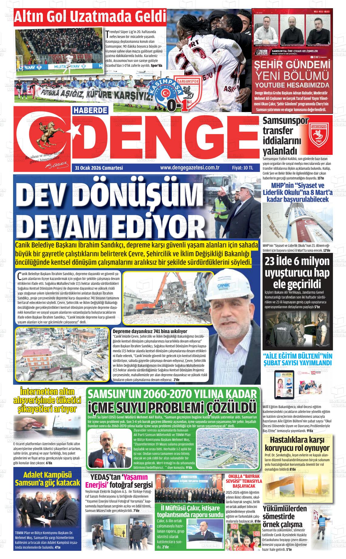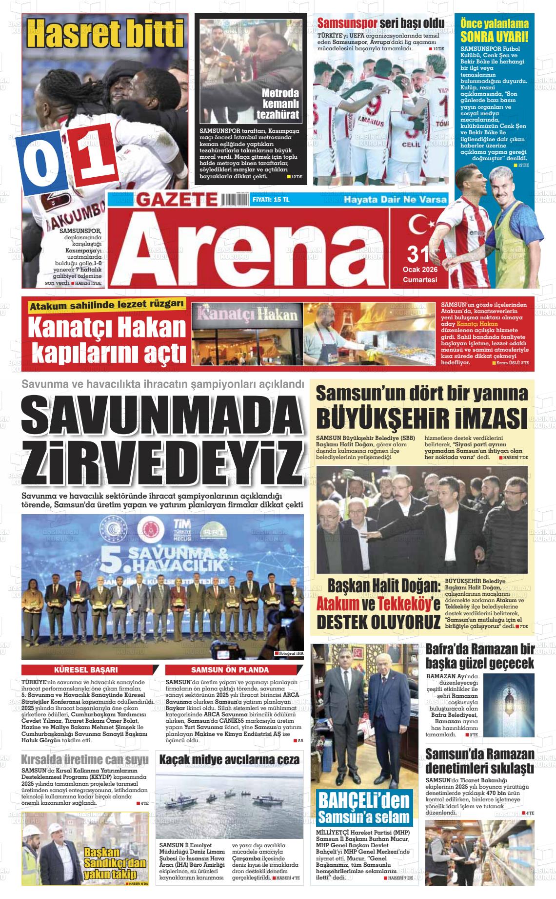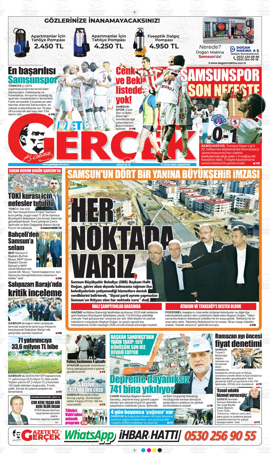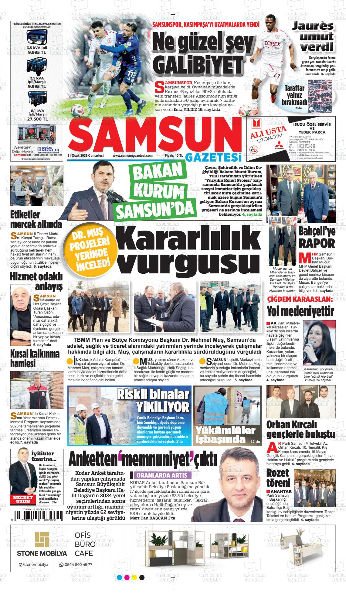 Samsun Yerel Gazeteleri 31 Ocak 2026, Cumartesi Günü Manşeti