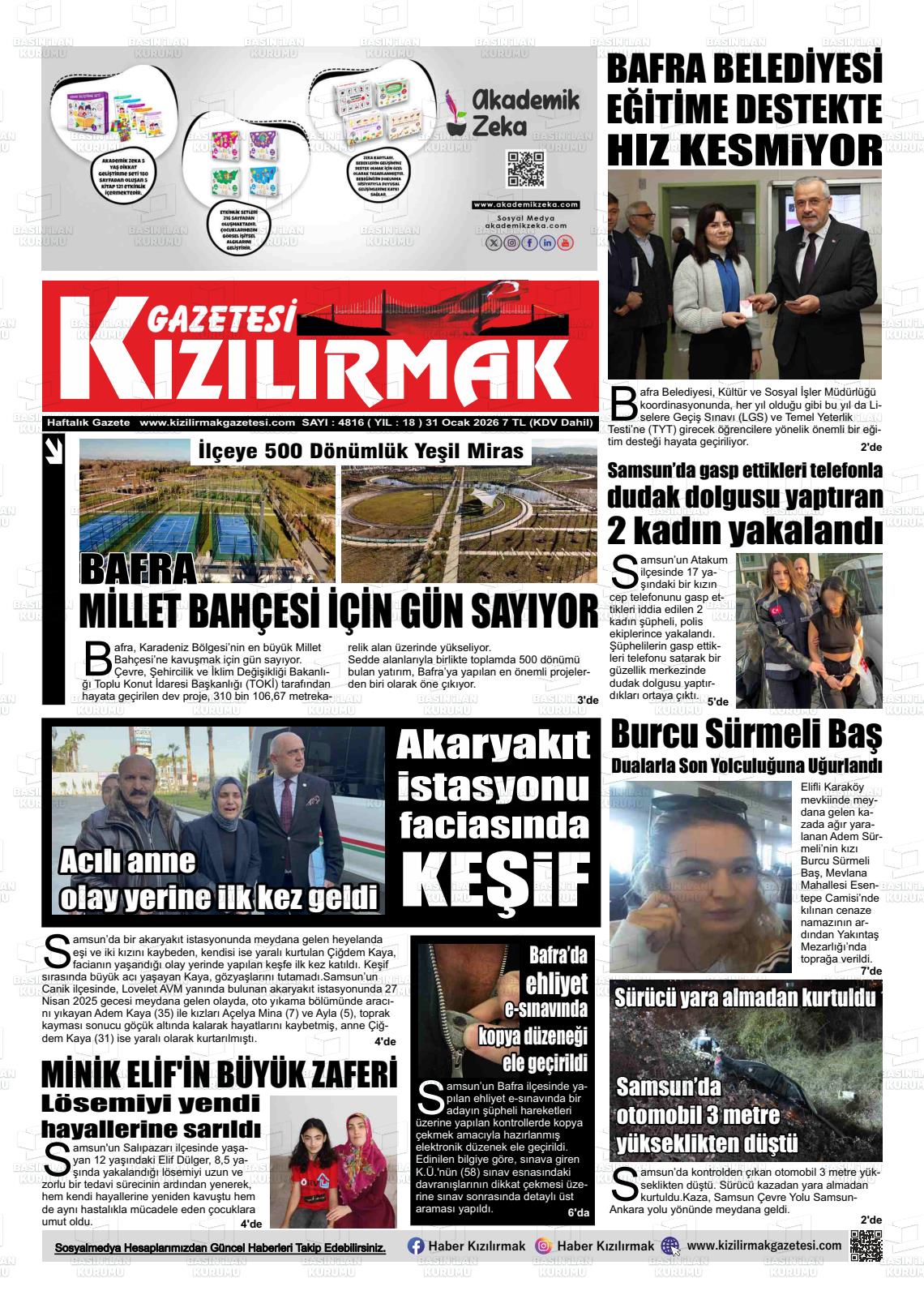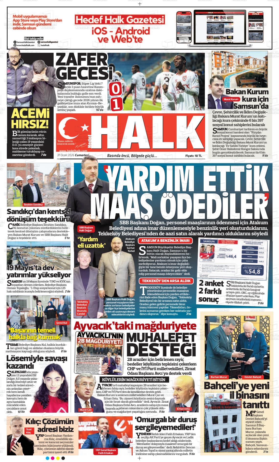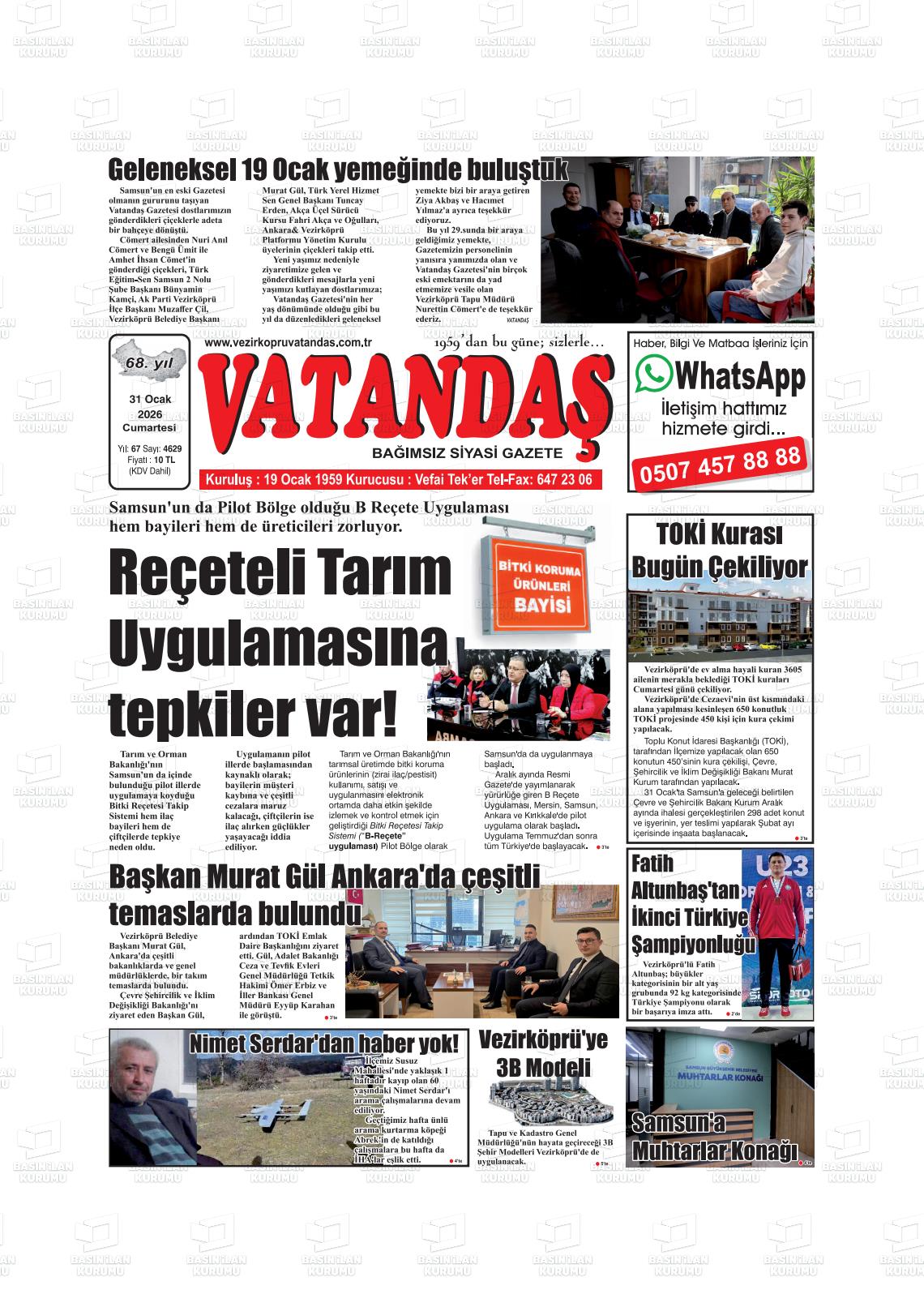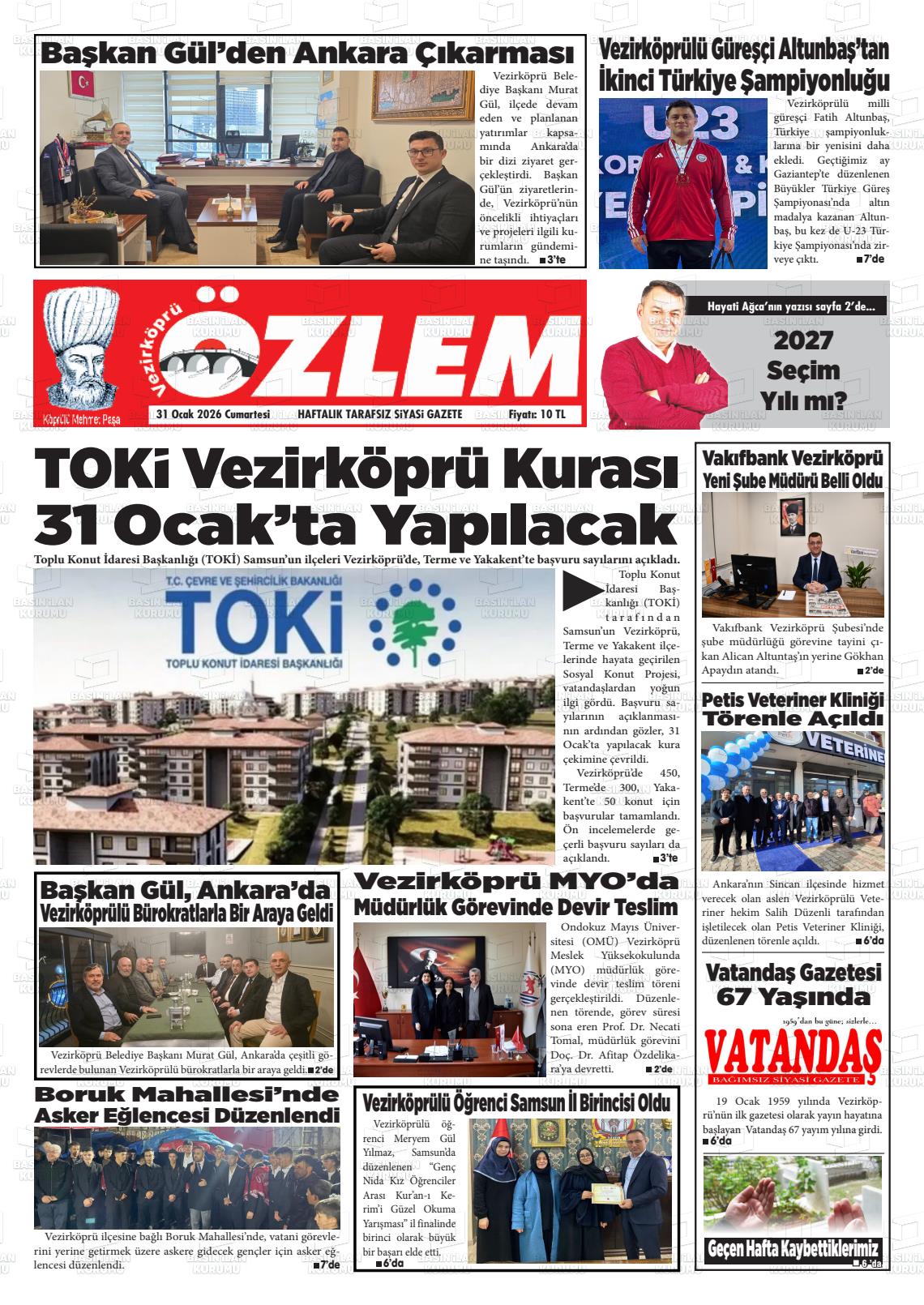 Samsun Yerel Gazeteleri 31 Ocak 2026, Cumartesi Günü Manşeti
