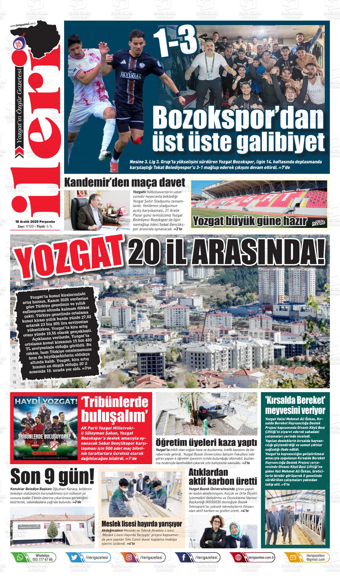 Yozgat Yerel Gazeteleri 08 Şubat 2026, Pazar Günü Manşeti